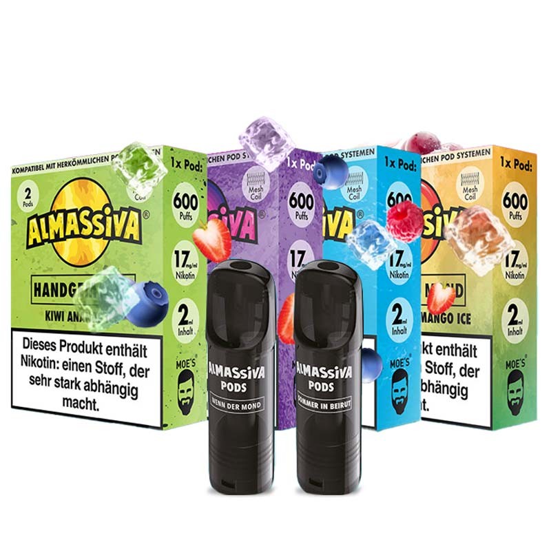 Die Prefilled Pods von der Marke Al Massiva sind vorbefüllte Liquid Pods, erhältlich in 10 leckeren Geschmacksrichtungen, mit 17mg/ml (1,7%) Nikotin und passen auch in den Elfa Akku. Die Al Massiva Pods enthalten 2ml Liquid für bis zu 600 Züge.