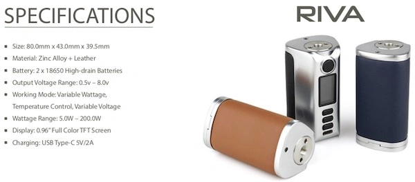 Der Riva Mod von Dovpo ist genauso hochwertig verarbeitet wie sein DNA-Bruder, anstelle des DNA250C wurde hier jedoch ein hauseigener Chipsatz verbaut. Somit kann dieser Mod um ein vielfaches günstiger angeboten werden. Ein mittig positionierter 510er Anschluss bietet Verdampfern mit bis zu 35 mm Durchmesser Platz. Zwei 1860 Akkus(nicht enthalten) liefern die nötige Power, bis zu 200W, und Ausdauer. Alle DNA Leckerbissen. Ein USB-C-Anschluss mit 2A Quick Charge und ein schönes Farbdisplay machen aus diesem Mod eine Preis-Leistungs Empfehlung für alle Dampfer.