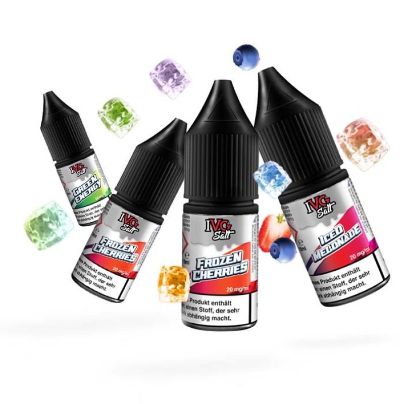 IVG Salt Nikotinsalz Liquid gibt es in 22 leckeren Sorten, wahlweise mit einem Nicsalt-Gehalt von 10mg oder 20mg: