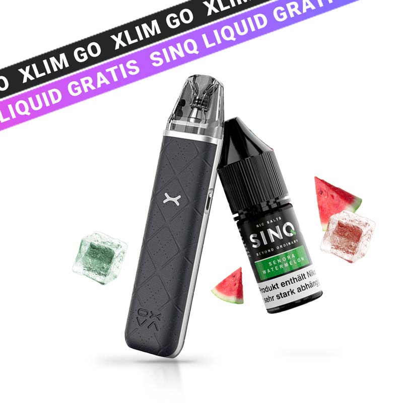 Exklusives Bundle mit OXVA und SINQ. Jetzt das Oxva Xlim Go Pod System probieren, 1x SINQ Liquid der Sorte Sonora Watermelon 10mg gibt es kostenlos dazu! Limitierte Stückzahl, schnell sein lohnt sich.