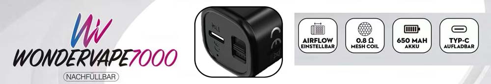Die Wondervape 7000 kann bis zu dreimal mit jeweils 10ml Liquid befüllt werden. Jede Füllung ermöglicht bis zu 7000 Züge, was insgesamt bis zu 21000 Züge pro Gerät bedeutet.